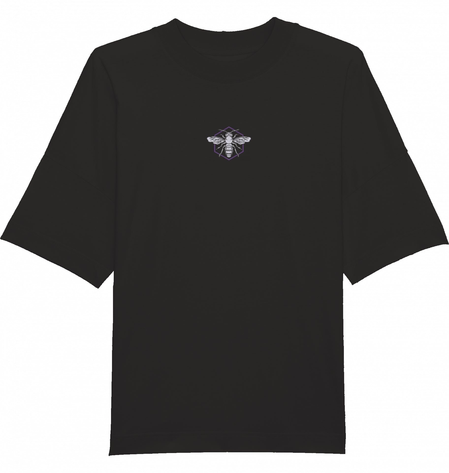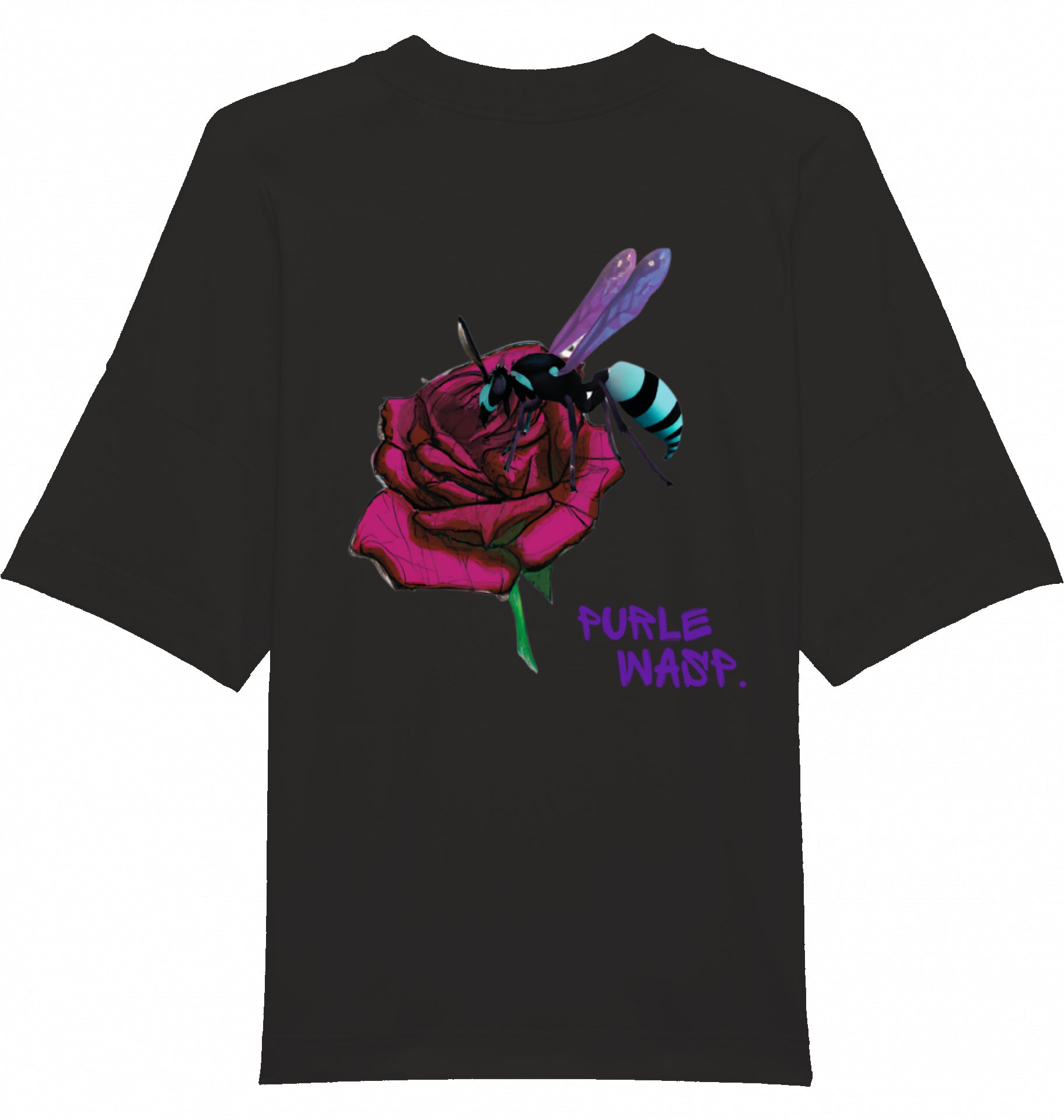 Schwarzes Premium T-Shirt im Oversized Schnitt mit gesticktem Logo auf der Brust und auffälligem Backprint im wasp Style.